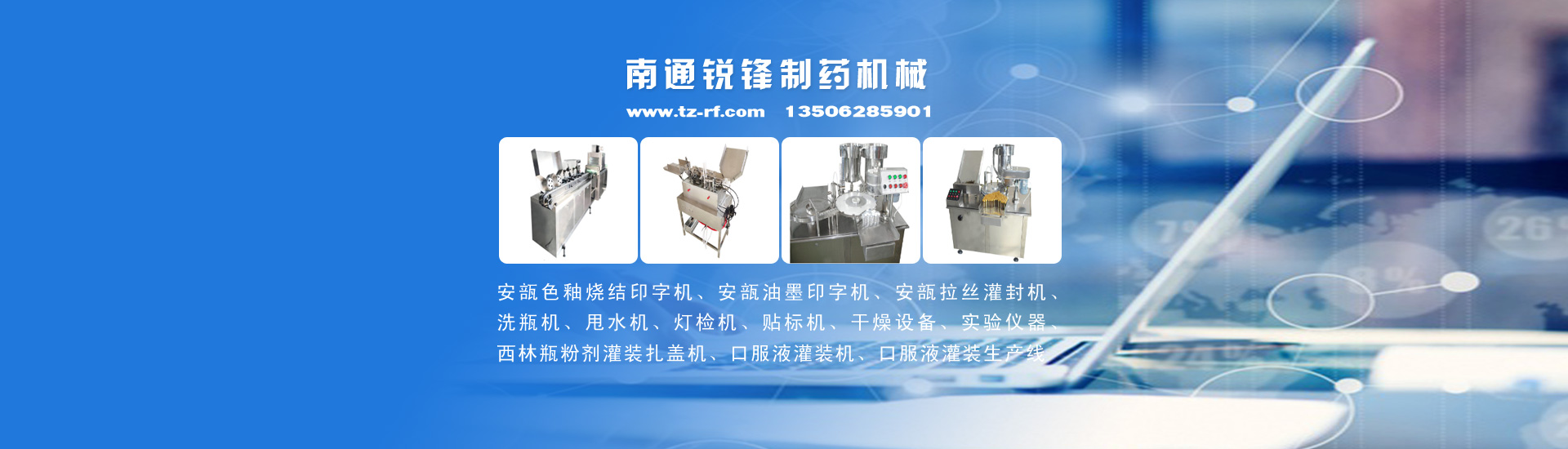 公司主要產品有:安瓿色釉燒結印字機、安瓿油墨印字機、安瓿拉絲灌封機、西林瓶粉劑灌裝機、洗瓶機、安瓿甩水機、燈檢機、貼標機、口服液灌裝機、口服液灌裝生產線、制藥機械、干燥設備、實驗儀器等,并可根據客戶要求非標定制生產。產品廣泛用于制藥、食品、保健品、化妝品等行業。